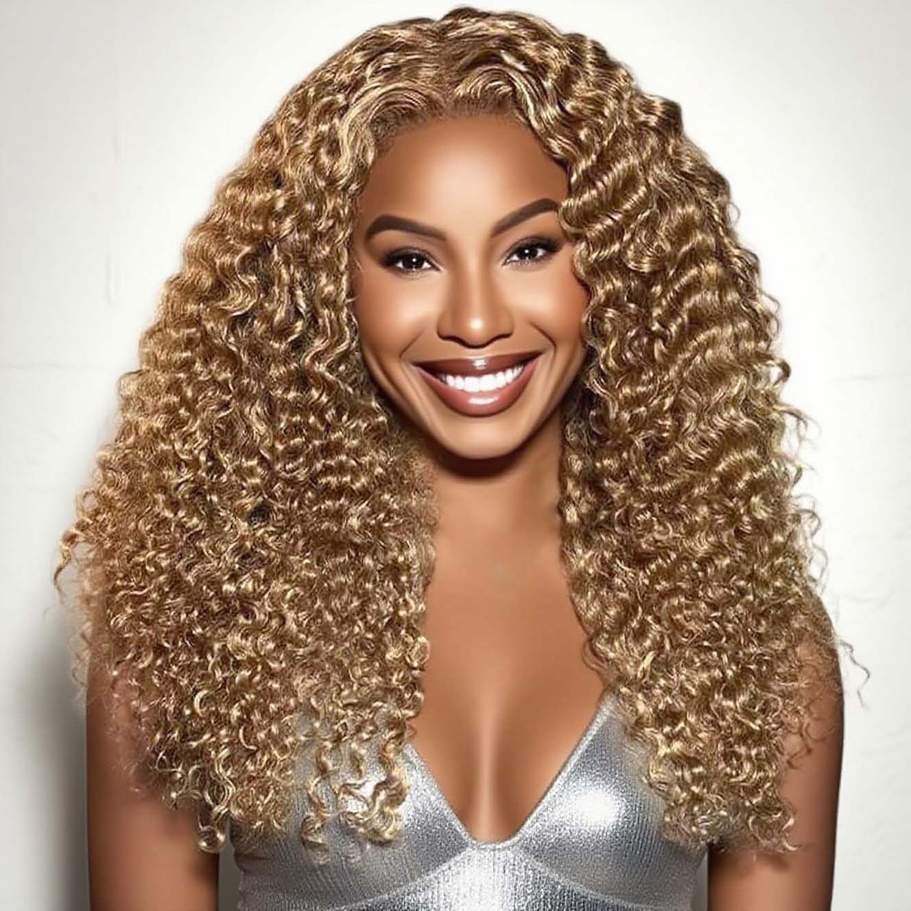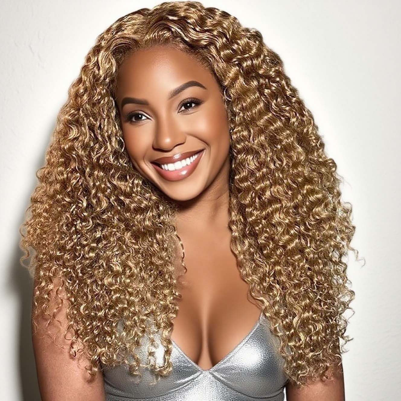 100% Human Hair Wig 13x4 Lace Frontal Blonde #27 Curly Pre Plucked Glueless Natural Look For Women