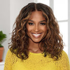 13X4 Lace Frontal Human Hair Wigs Glueless Highlight Medium Length Wavy Natural Look Pre Plucked