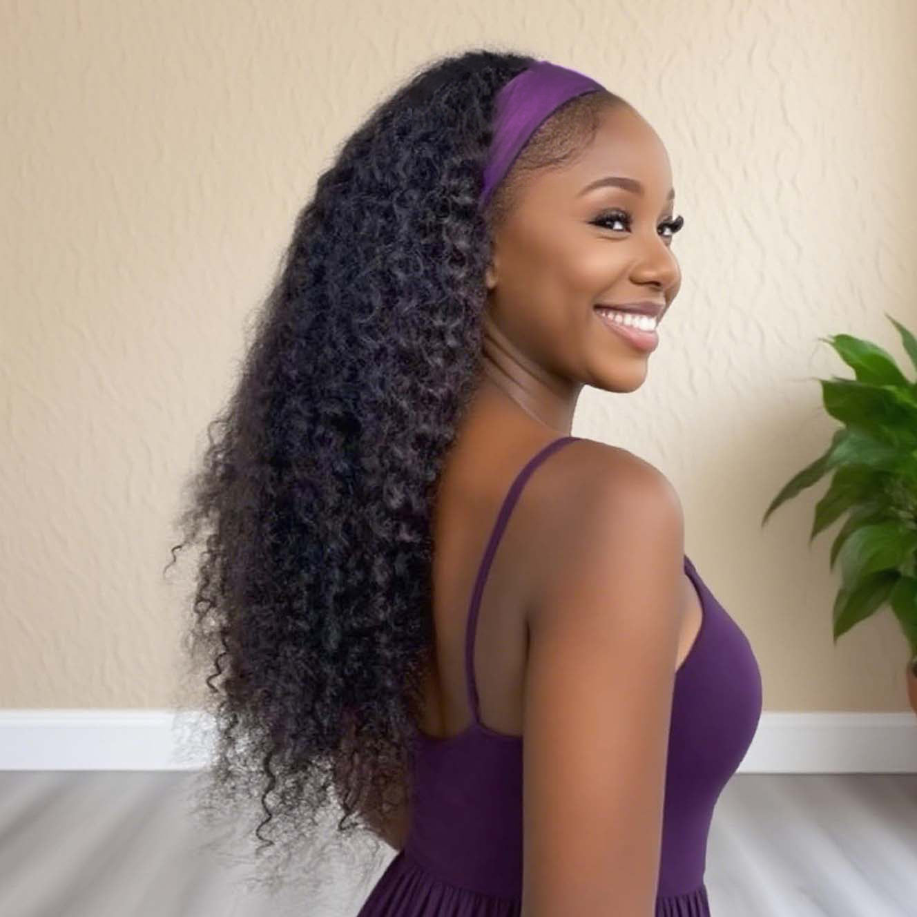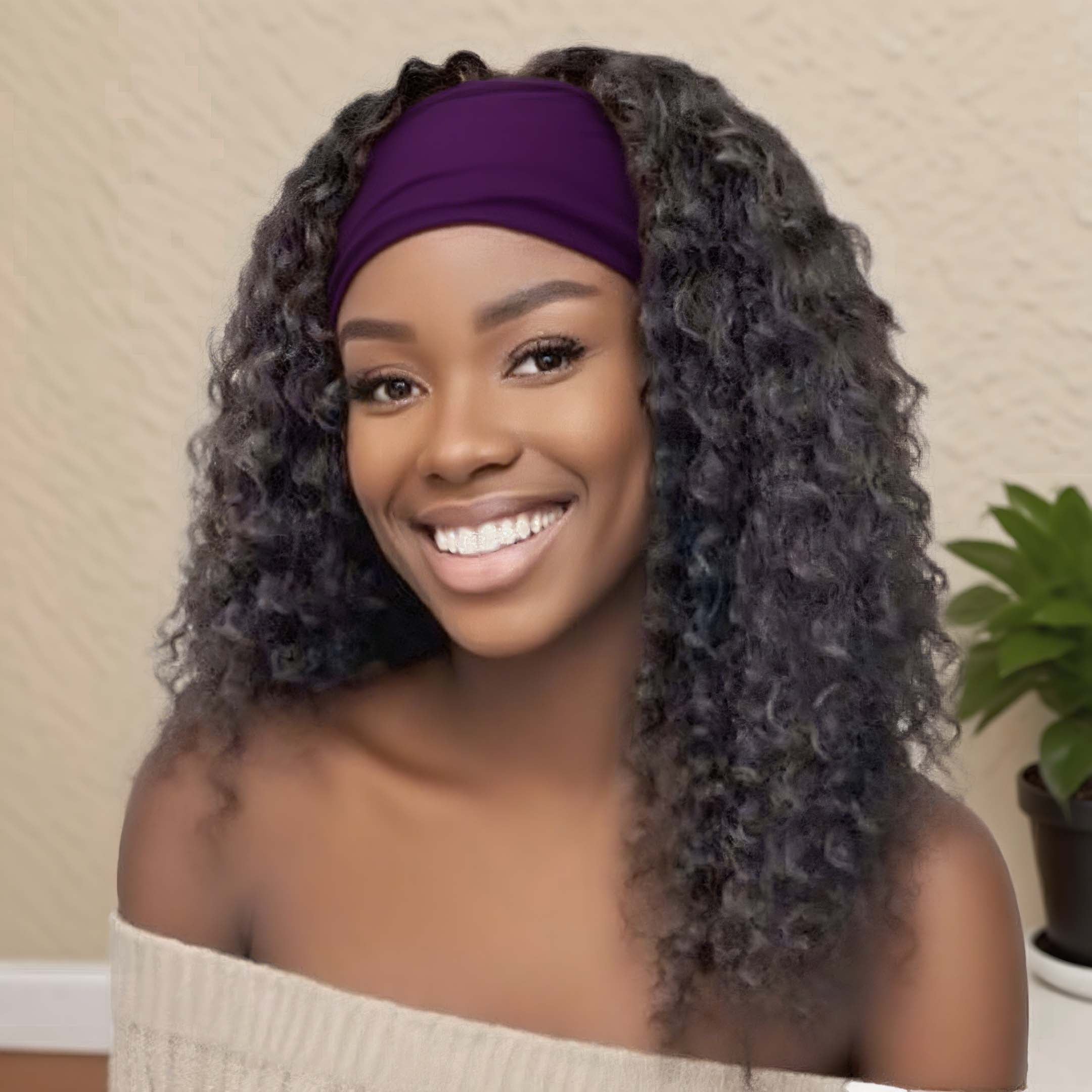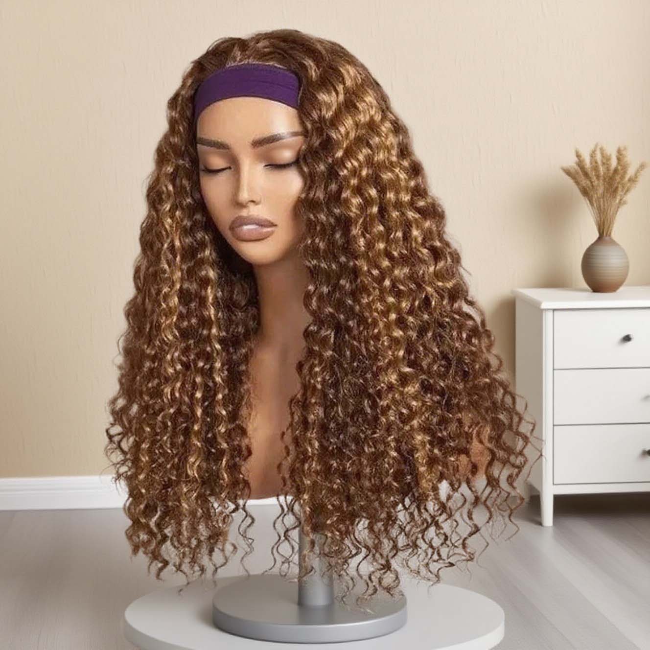 Black/ Brown Highlight Deep Wave Head band Wig Free Trendy Headbands