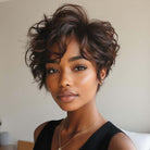 Glueless Easy Wear Human Hair 5x5 lace closure Wigs for Black Women Pixie Cut Brown Waves Short No Shedding