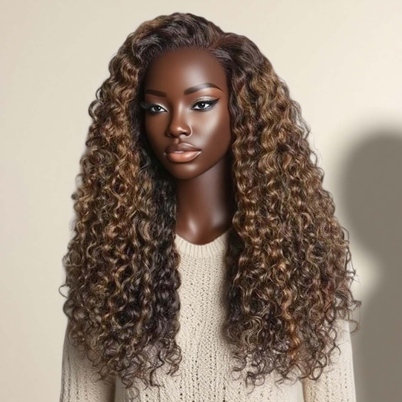 Embrace the beauty of curls with confidence the Funmi Curly Brown Highlights Glueless HD Lace Wig makes every day a good hair day.