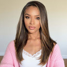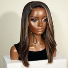 Glueless Human Hair Wig Ready To Wear Brown Highlight Straight Side Part 5x5 lace closure wig
