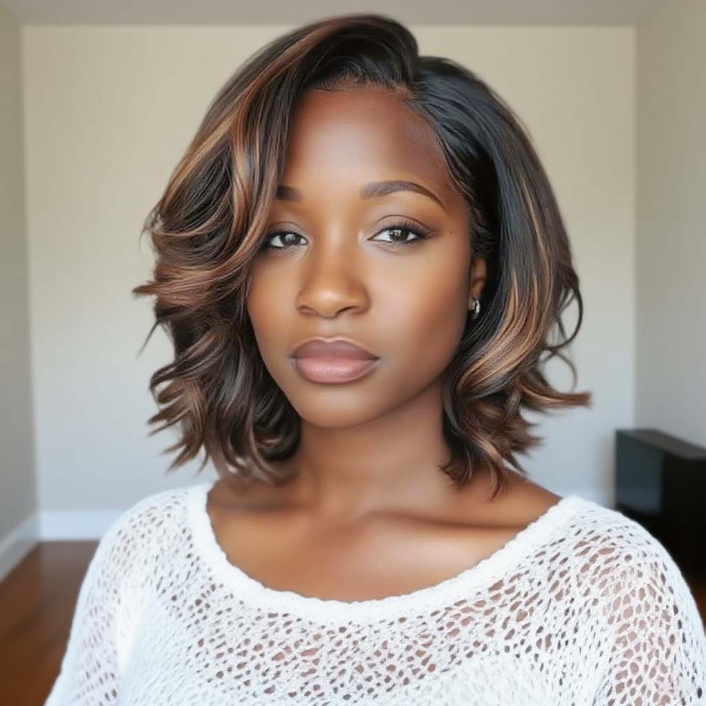 Glueless Pre Cut Lace Human Hair Bob Wig Wear Go Brown Highlights Side Part 13X4 lace frontal wig