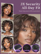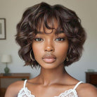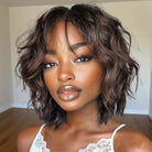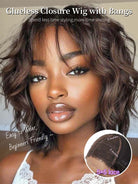 Glueless Short Brown 5x5 Lace Closure Wigs with Bangs Human Hair for Women Ready to Wear Tangle Free
