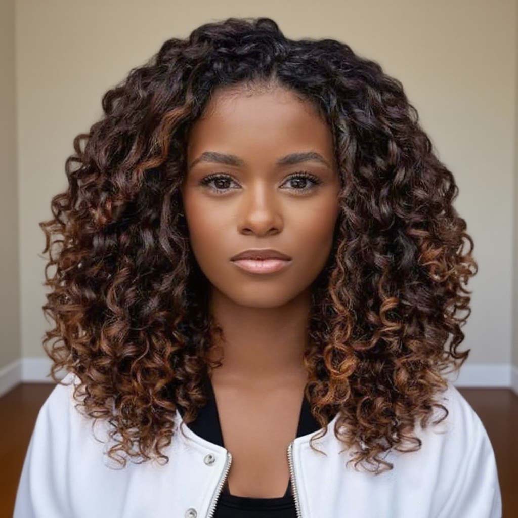 Glueless Wear Go Shoulder Length Human Hair Wig Brown Highlight Curly 5x5 lace closure wig