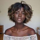 Highlight Blonde Human Hair 5x5 Lace Closure Wigs Short Wavy With Bangs Wear And Go Glueless No Shedding Natural Look