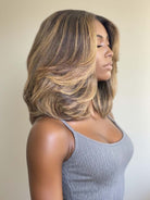 Human Hair 13x4 Lace Frontal Wig Designer Highlight Middle Part Layered Short Bob Glueless Natural Look Pre Plucked