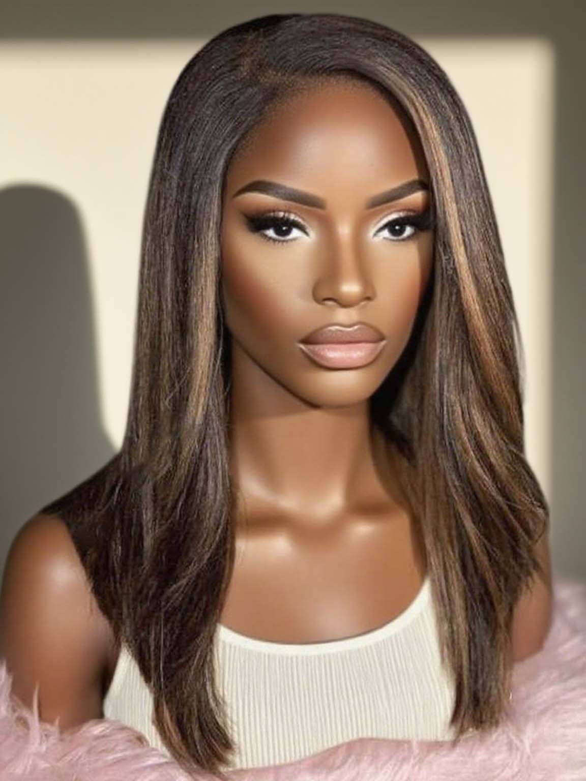 UNice Glueless 5x5 Lace Closure Wig Brown Highlight Straight Side Part | Ready To Wear & Natural Look