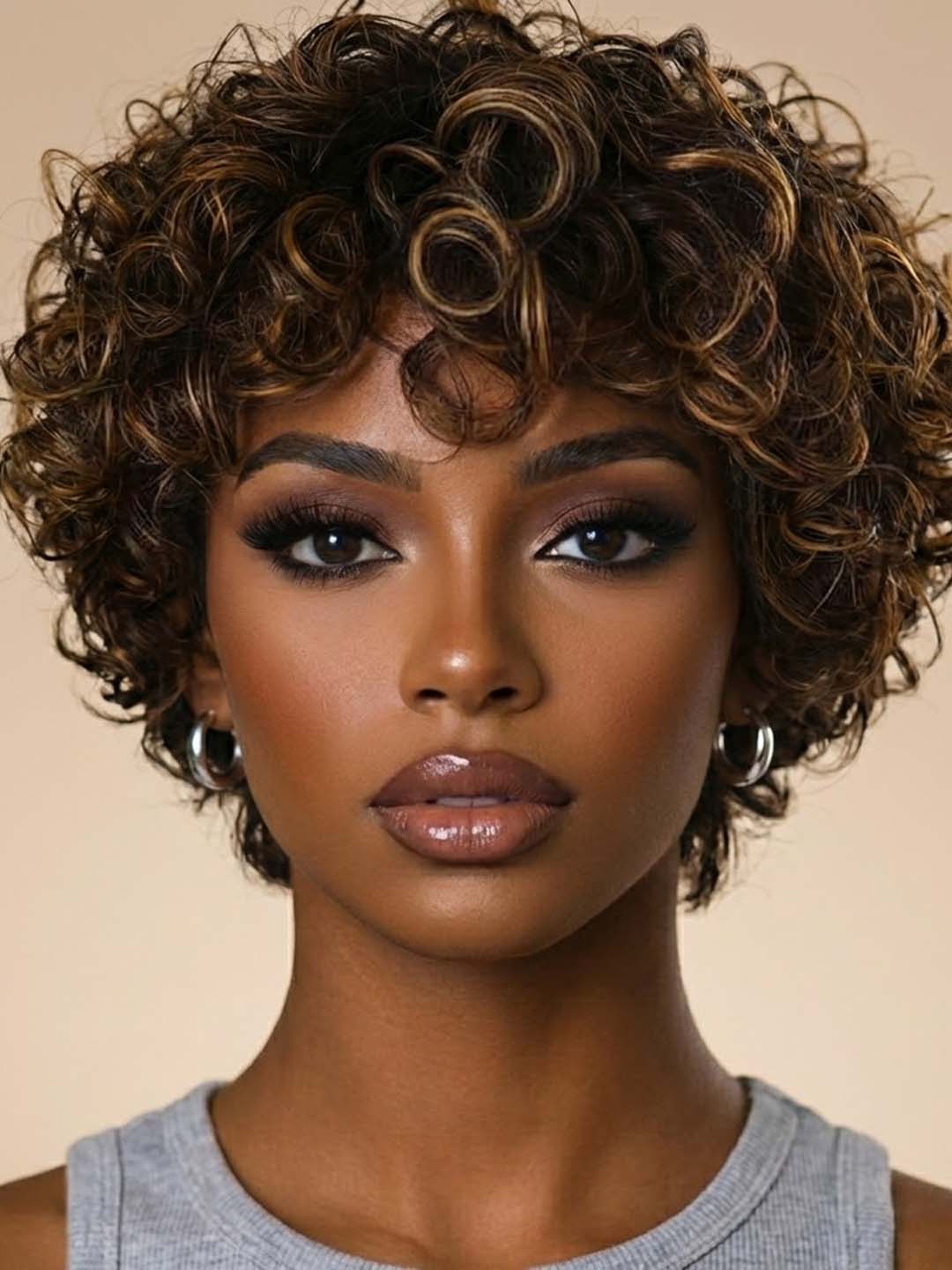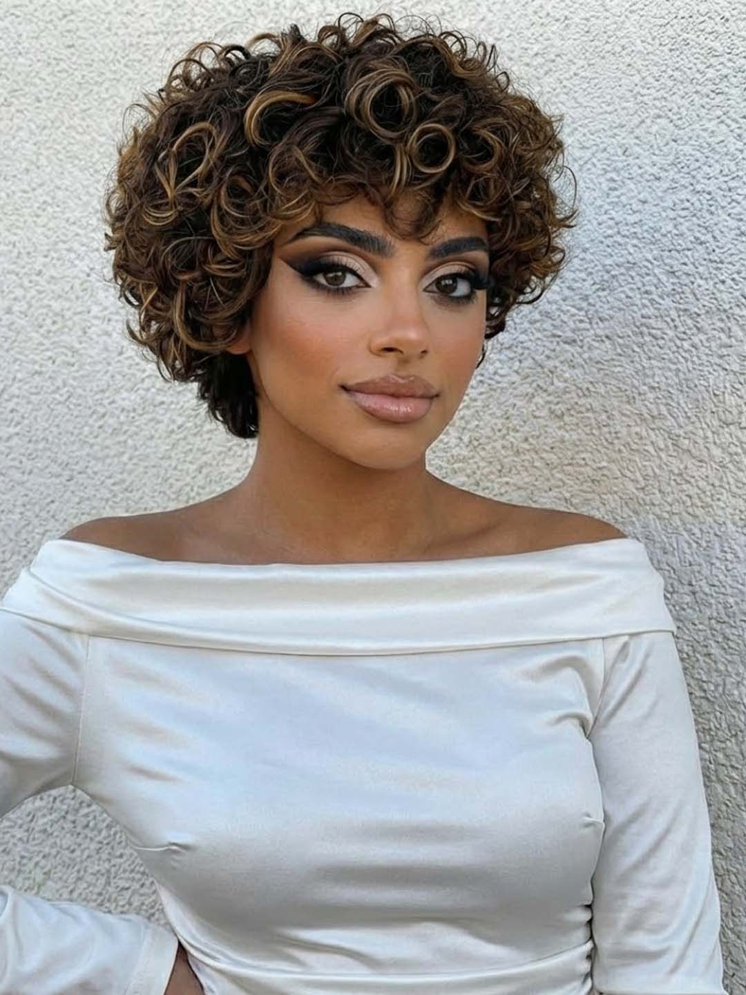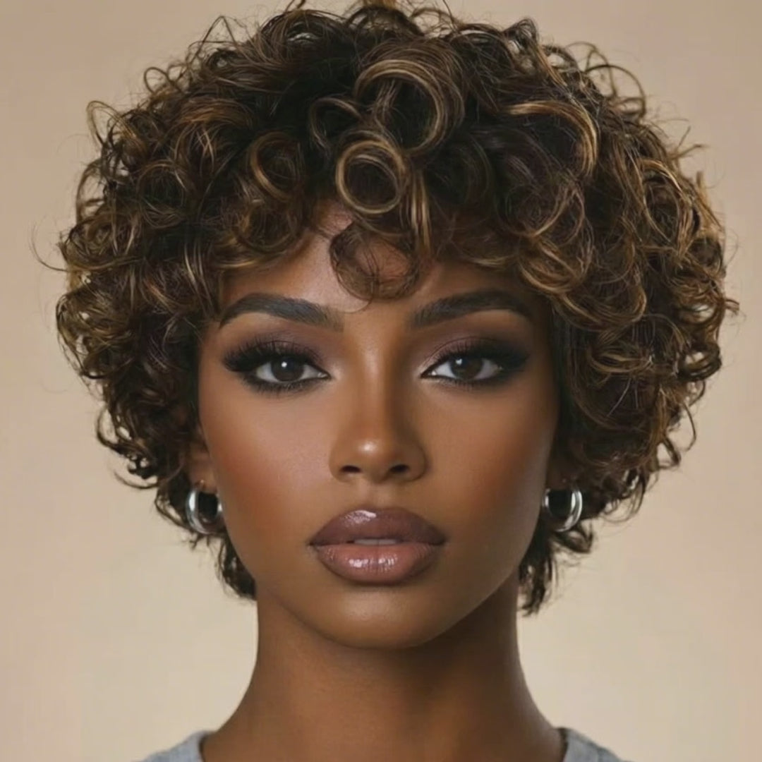 With its soft curls, flattering bangs, and natural highlights, this short pixie cut human hair wig is the ultimate blend of beauty and practicality. Whether you’re getting ready for work, travel, or a night out, this wig helps you look stylish, confident, and fresh every single day.