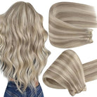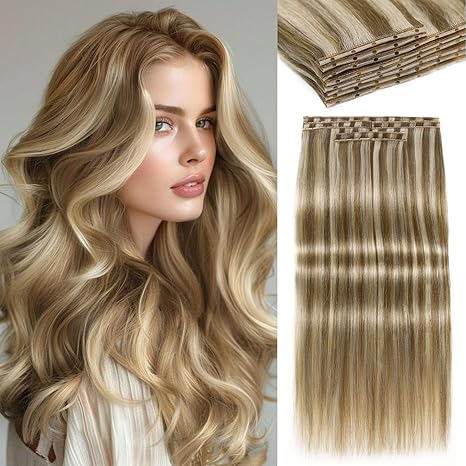 Butterfly Weft Human Hair Extensions – Mixed Blonde Real Human Hair, Invisible PU Skin Weft with Micro Beads