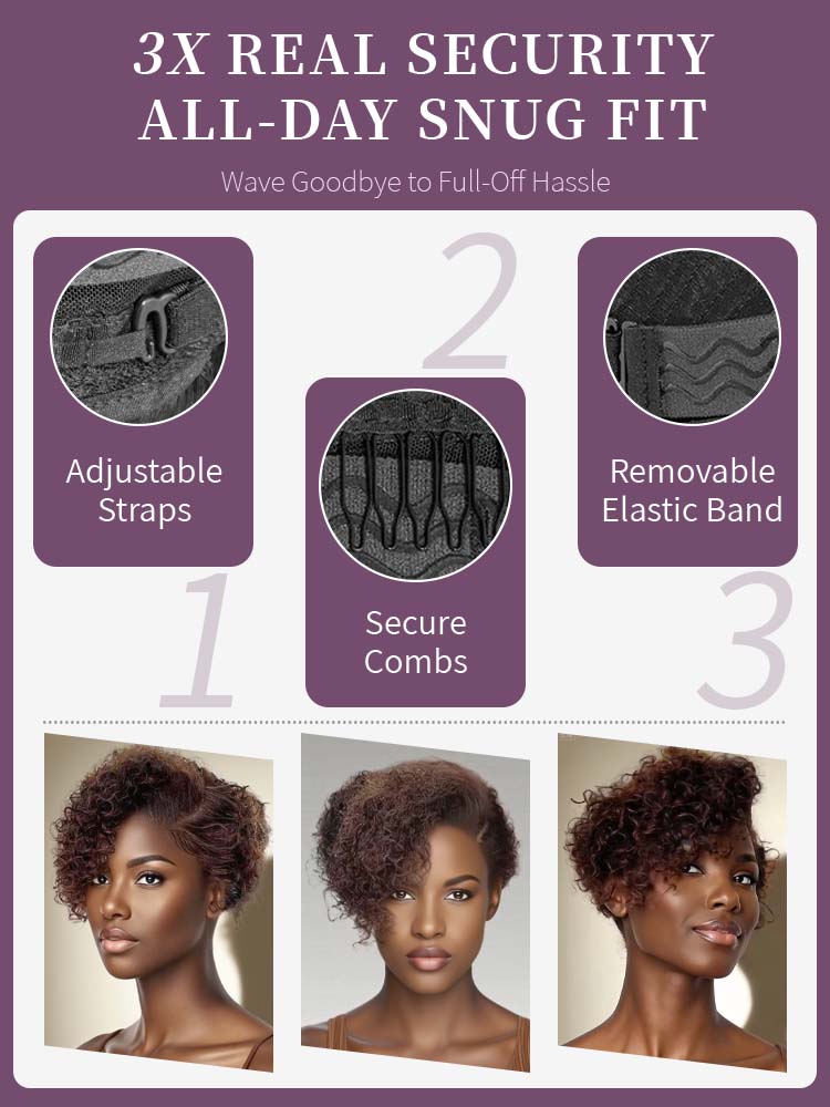 Perfect for women with natural curly or coily hair (3B–4A textures) who crave a chic, natural look without spending hours styling. Whether you’re growing out your curls, protecting your natural hair, or simply craving a short, confident style this wig delivers unmatched texture, softness, and volume that feels like your own.