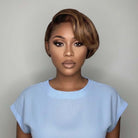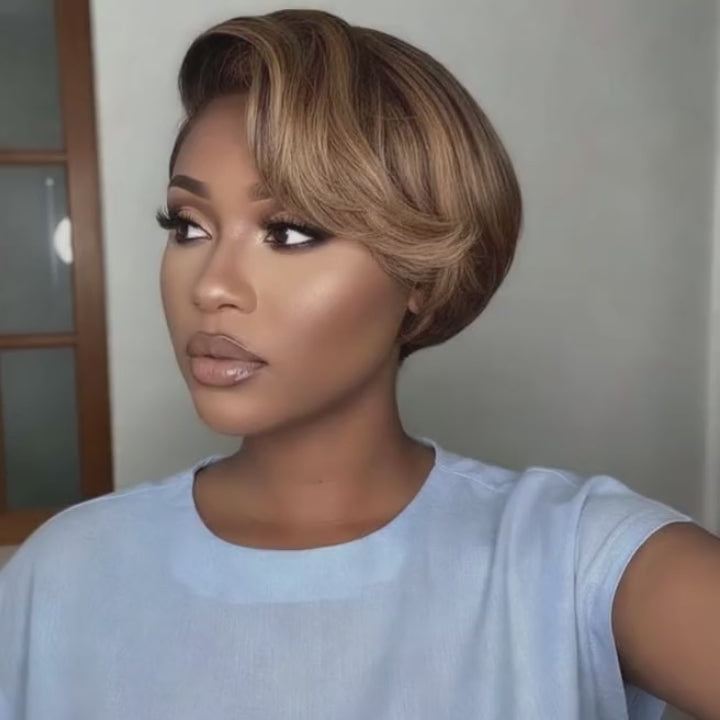 Sophisticated. Sleek. Timeless.Honey Blonde Highlight Piano Color Side-Part Bob 13x4 Lace Frontal Wig