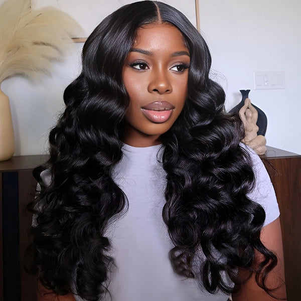 This Loose Deep Wave Human Hair Wig features soft, flowing waves with a natural sheen that mimics healthy, real hair. The deep, glossy black tone paired with loose deep wave texture creates a luxurious, effortless style perfect for both everyday wear and special occasions.