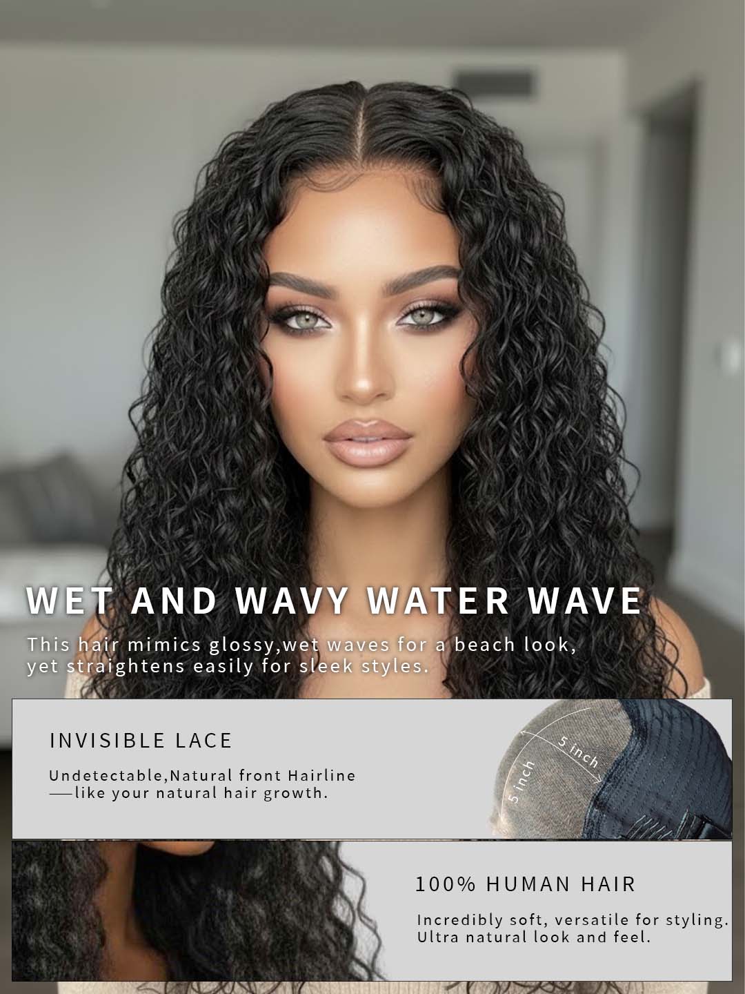 Varia Hair Wet & Wavy Glueless Lace Frontal Wig 100% Brazilian Human Hair Water Wave “Wear & Go” Wig